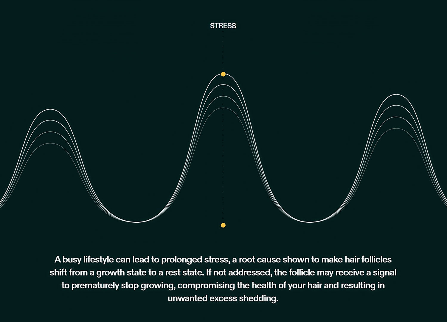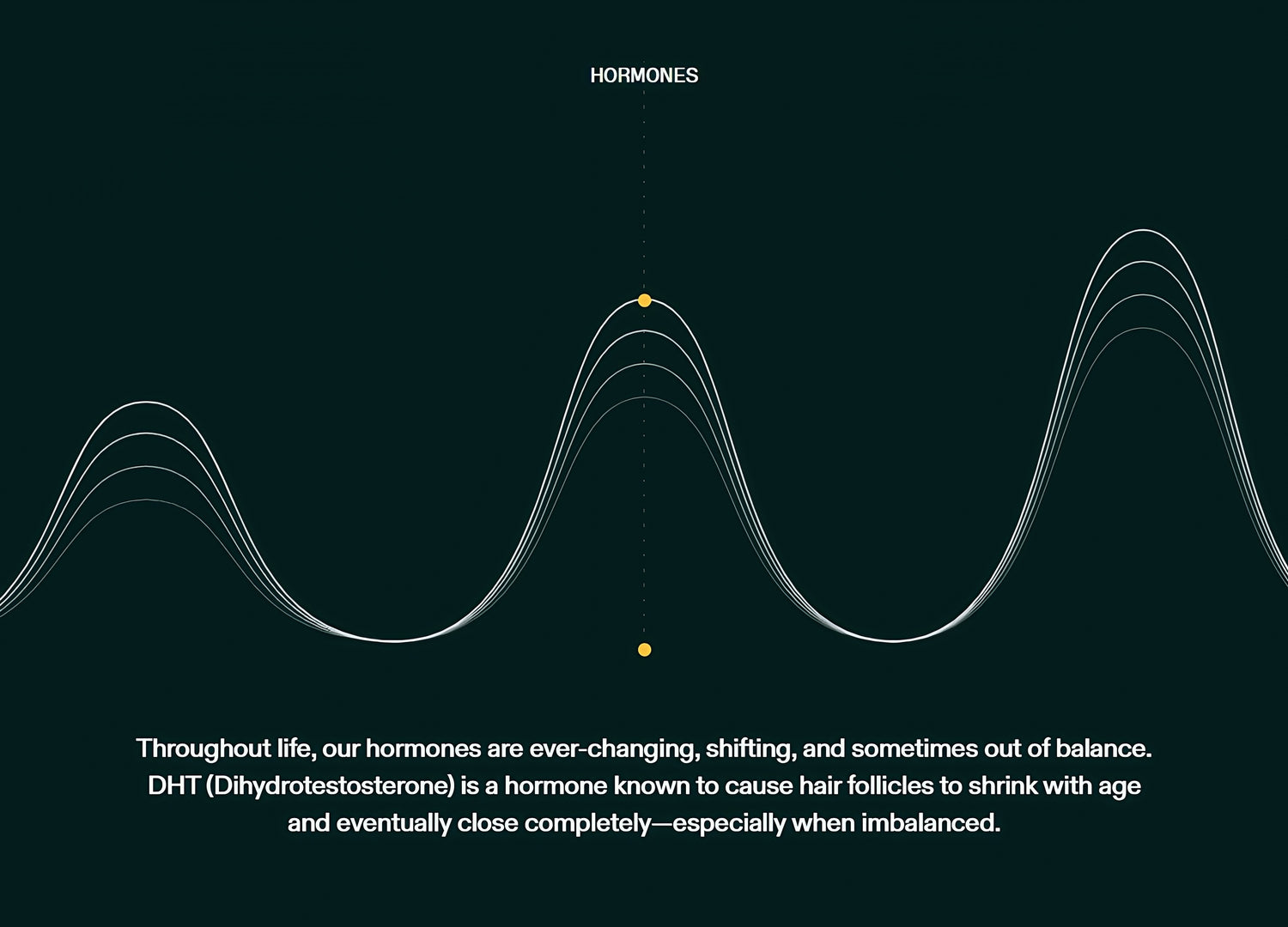 For women, stress is a major root cause of poor hair growth. Hormones also play a significant role for women due to fluctuations throughout life, especially during and after childbirth when estrogen and progesterone decline and cortisol increases by over 200%. Follicles are also damaged by metabolic changes, nutritional deficits, and environmental exposure including overstyling, chemicals, and heat.